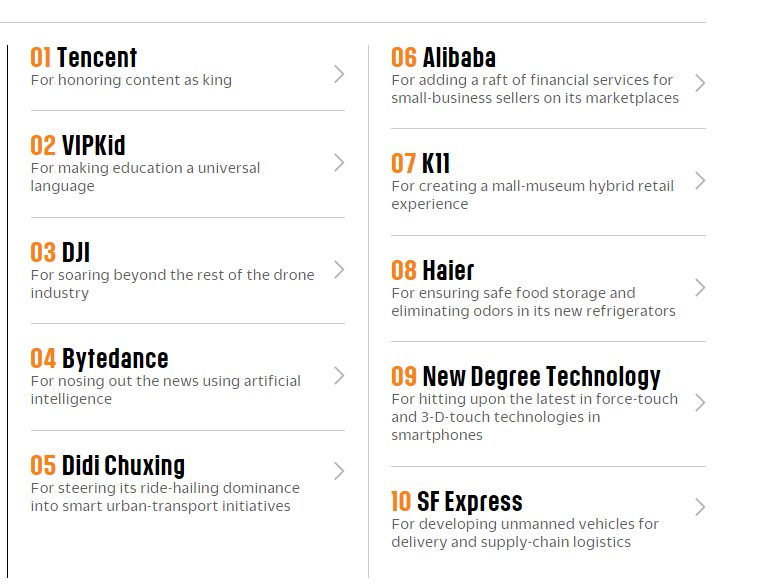 作为全球榜单第四名和中国榜单第一名,《快公司》肯定了腾讯在2017年所获得的成绩,指出“2017年11月,腾讯推出了数字阅读公司——阅文集团,以10亿美元的IPO价格为全球近2亿用户提供1000万本书籍,并挖掘其图书资源,开发电影,电视剧等,通过微信、媒体分发。腾讯拥有世界上最大的游戏公司,也开始基于游戏和其他知识产权,制作节目、投资电影等,例如游戏《王者荣耀》就被其打造成一档明星综艺游戏节目。”