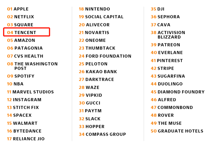 《快公司》公布世界最具创新力公司榜单 腾讯位列全球第四