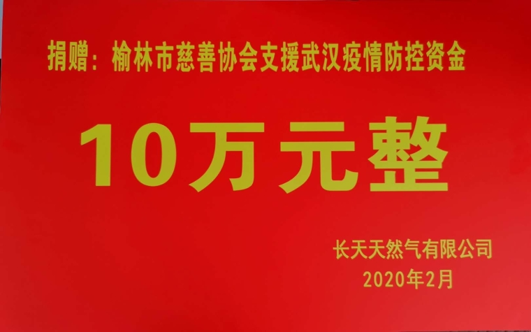 抗疫情献爱心 长天天然气有限公司向武汉捐款10万元